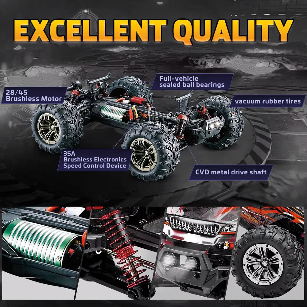 Mükemmel Fırçasız Motor: Son derece güçlü fırçasız motor size gerçek bir yarış deneyimi sunuyor. Fırçasız motor, fırçalı motora göre daha dayanıklı ve daha hızlıdır. Kullanım ömrü fırçalı motora göre 2-3 kat daha uzun olup, güç tüketimi fırçalı motora göre 1/3 oranındadır.